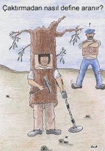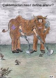 Dedektör kullanıcılarının resimleri ve definecilerle ilgili karikatürler.